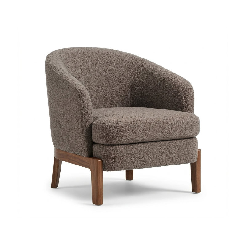 Design: Ergonomic barrel-back silhouette with a seamless, upholstered finish.